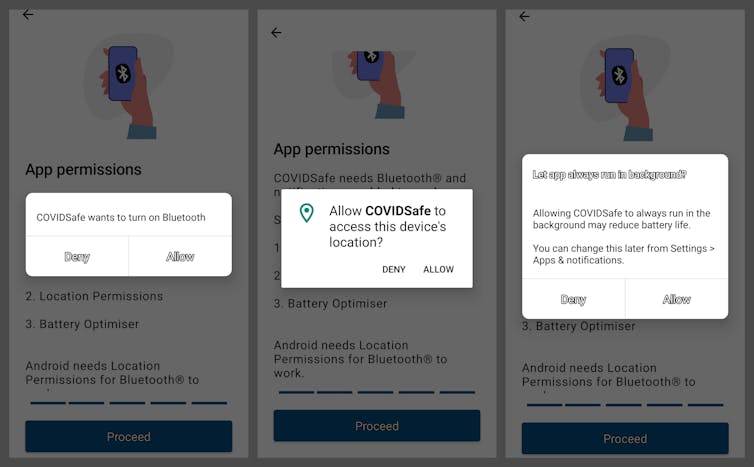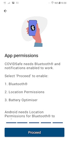 In regards to enabling location permissions, it’s important to note this isn’t the same as turning on-location services. Location permissions must be enabled for COVIDSafe to access Bluetooth on Android and Apple devices. And access to your phone’s battery optimiser is required to keep the app running in the background.